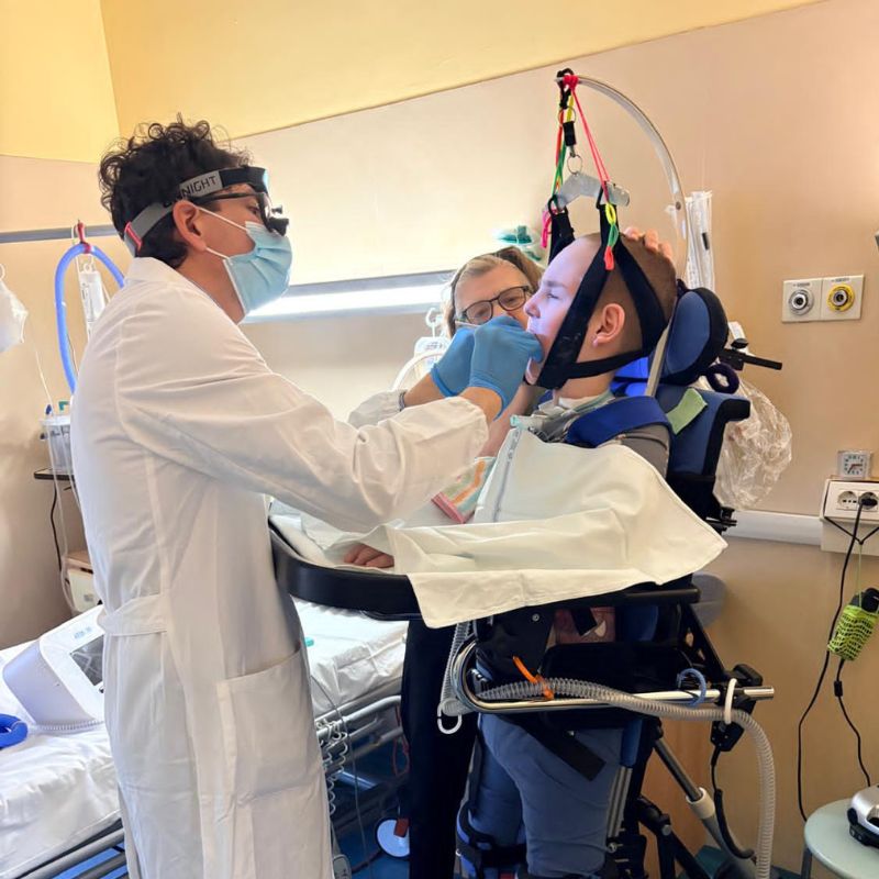 «Per essere efficaci in un contesto come il Centro Clinico NeMO, che accoglie sia pazienti in degenza ordinaria – spesso allettati, con tracheostomia e PEG – sia persone che accedono alle attività diurne, in sedia a rotelle e con posture personalizzate, è stato necessario ripensare l’organizzazione degli interventi odontoiatrici – Racconta Luca Pavesi – Ci siamo quindi dotati di una strumentazione mobile completa, con strumenti rotanti e sistemi di illuminazione facilmente trasferibili, in grado di adattarsi agli spazi del reparto e alle diverse condizioni cliniche dei pazienti.»